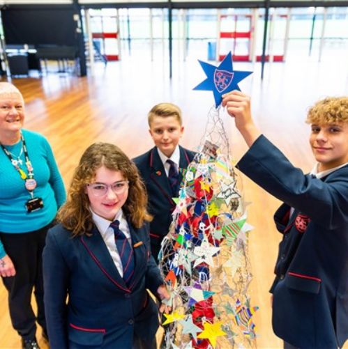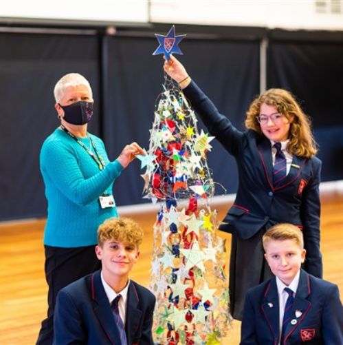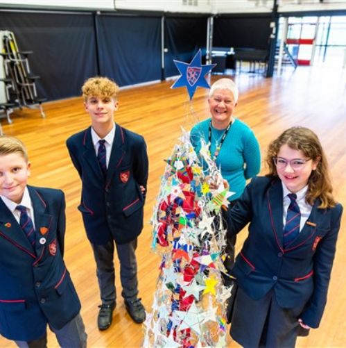 The environmentally friendly festive decoration was created by Year 7 students using chicken wire, cardboard, old school postcards, string and wool at Smithdon.